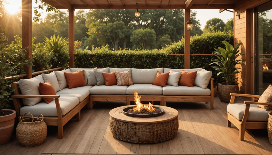 - Salon détente : créez une atmosphère cosy avec des fauteuils confortables et des coussins d'extérieur pour vos moments de relaxation.